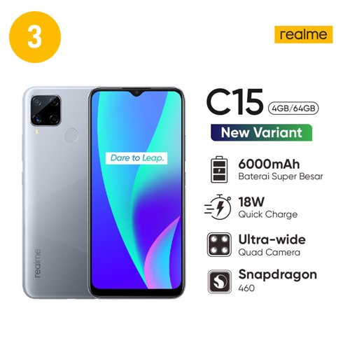 HP murah harga 1 juta-an yang selanjutnya adalah Realme C15. Dengan merogoh kocek di kisaran Rp 1,9 juta-an, kamu bisa menikmati hp dengan kapasitas memori 3 GB + 32 GB. Sementara itu, resolusi kamera belakang tersedia dalam beberapa pilihan yakni 13 MP + 8 MP + 2 MP + 2 MP dan untuk kamera depannya 8 MP. Kualitas kamera semacam ini bisa mendukung kamu untuk mengambil foto dan video terbaik, bahkan berpeluang membuat konten kreatif yang menghasilkan rupiah. Di sisi lain, kualitas baterainya pun tak bisa dianggap sebelah mata. Baterai hp murah berkualitas ini sangat awet karena kapasitasnya besar yakni 6000 mAh.